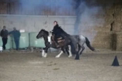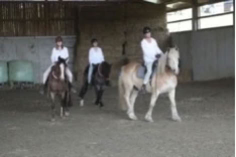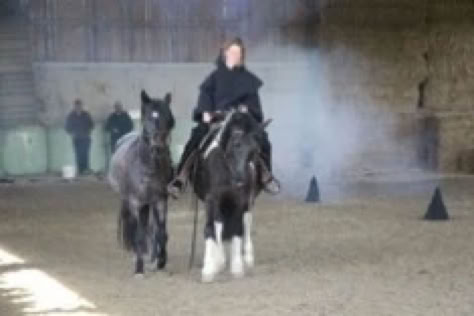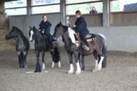 Im August haben unsere Pferde Sommerferien und da wird gespielt, ob über Planen laufen oder den Ball rollen, die 3er Gruppe hatte viel Freude mit ihren Pferden. September, d.h. Oktoberfest, Party!!! Vier Mädchen ritten ihre Pferde ohne Zaumzeutg , aber im Dirndl, leicht und locker, Party! Die lustige Zeit war dann vorbei. Im November zog Nebel aus der Nebelmaschine auf und dunkle Gestalten ritten durch die Halle: die Nebelreiter, jeweils ein Reiter mit Handpferd - dunkle Zeiten!!! - aber voller Energie!