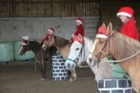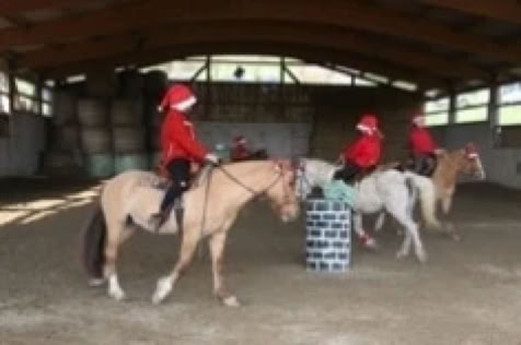 Und schliesslich ritten im Dezember lustige Weihnachtsmänner durch die Halle mit ihren gut gefüllten Säcken, deren Inhltam Ende auch noch ans Puplikum verteilt wurden. Sie zogen mit "Rudolph, the Red-Nosed Reindeer" ihre wilden Achter durch die Bahn.